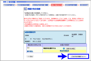 お届け先のご指定画面です。