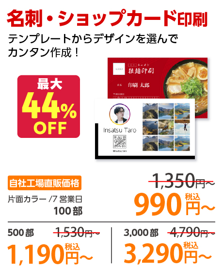 低価格、最小1,000部7,025円からご注文いただけ