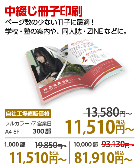 無線綴じ冊子印刷 ご注文中綴じ冊子印刷