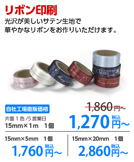 光沢鮮やかなリボンに一色刷りでオリジナルリボンを