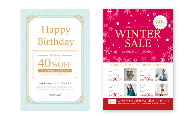 お店のロゴやSNS告知などお好きなデザインを入れ、
