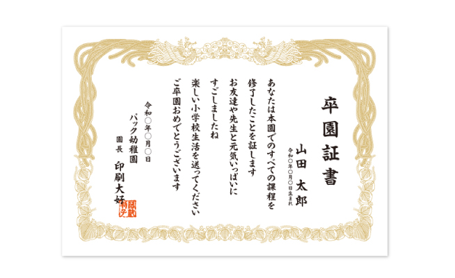 しておりますので、表彰状、感謝状、修了証書など、