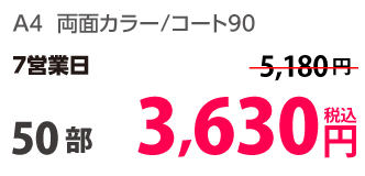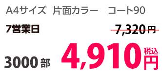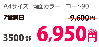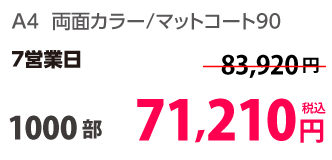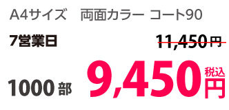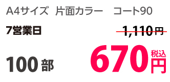 | A4 | コート90kg | 両面カラー | 100部 | 1,820 円 | 1000部 | 2,910 円 |