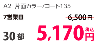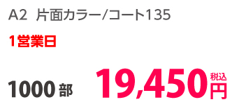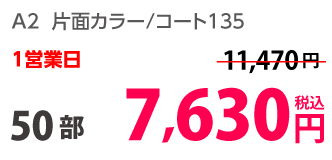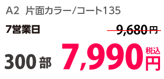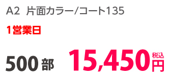 | A2 | 片面カラー | コート135kg | 100部 | 6,290 円 | 1,000部 | 13,950 円 |