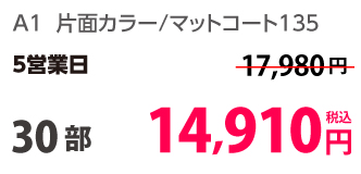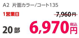 | A1 | 片面カラー | 光沢紙 | 1部 | 2,020 円 | 10部 | 10,770 円 |