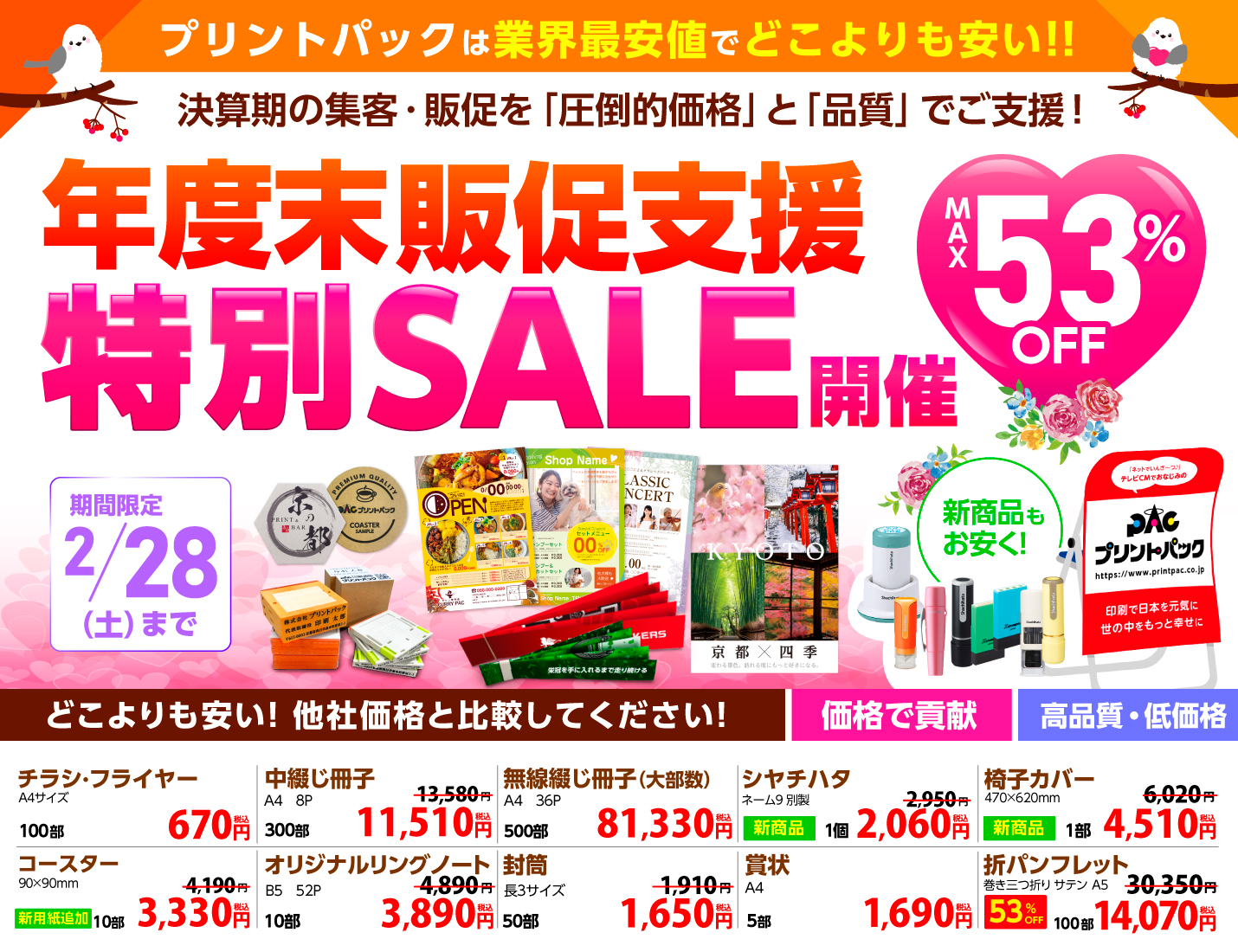 年度末の集客・販促に価格で貢献します!