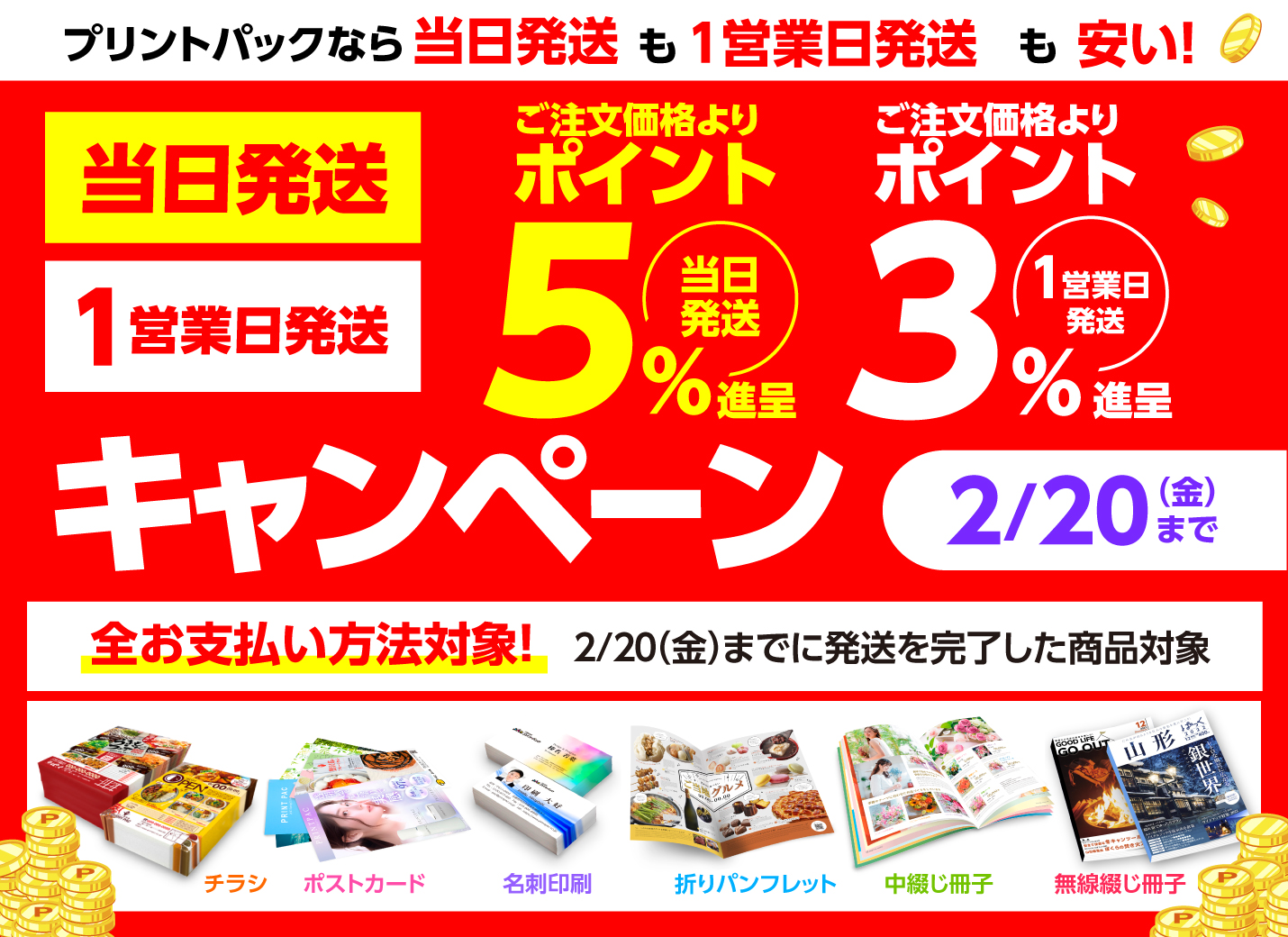 短納期ポイント5%・3%キャンペーン