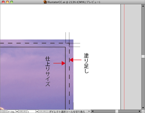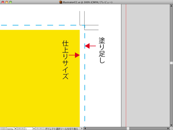 仕上りサイズよりもアートボードサイズをひとまわり大きくします サイズの目安