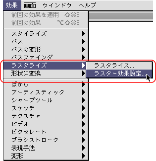 効果>ラスタライズ>ラスター効果設定