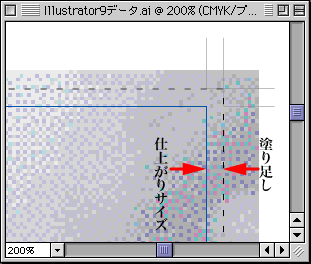 Illustrator 9.0.2から印刷用として、Illustrator形式(AI)で保存するときは、用紙サイズを大きくして、仕上がりサイズに対してトリムマークを作成してください。
