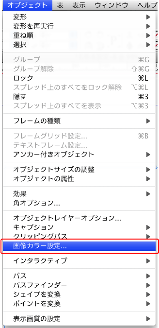Photoshop形式やTIFFの画像にICCプロファイルが埋め込まれている場合は、ICCプロファイルが埋め込まれた画像を選択してオブジェクトメニューの[画像カラー設定]ウィンドウで[プロファイル]で「ドキュメントのデフォルトを使用」に変更します。 変更すると、埋め込まれたICCプロファイルが適用されなくなります。
