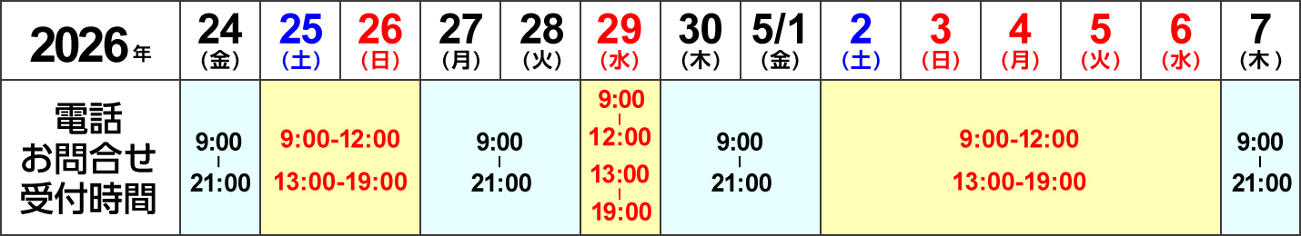 は通常時から、土・日・祝の対応が通常商品と異なっておりますが、