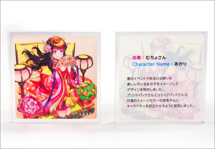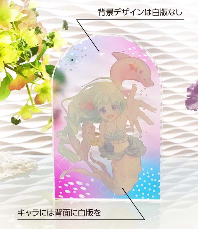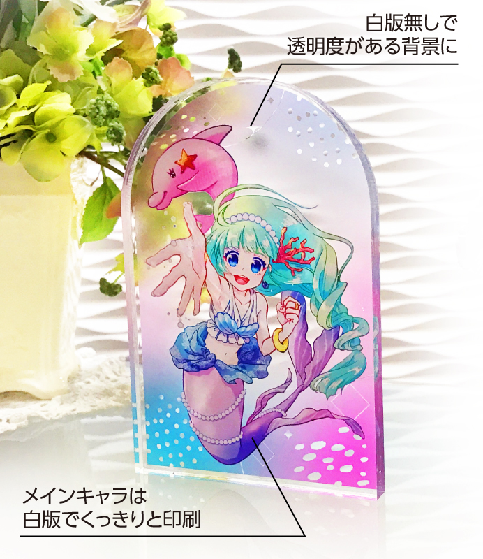 また、アクリル板は透明素材のため、モニターで見るよりも印刷が明るく(薄く)見える可能性があります。