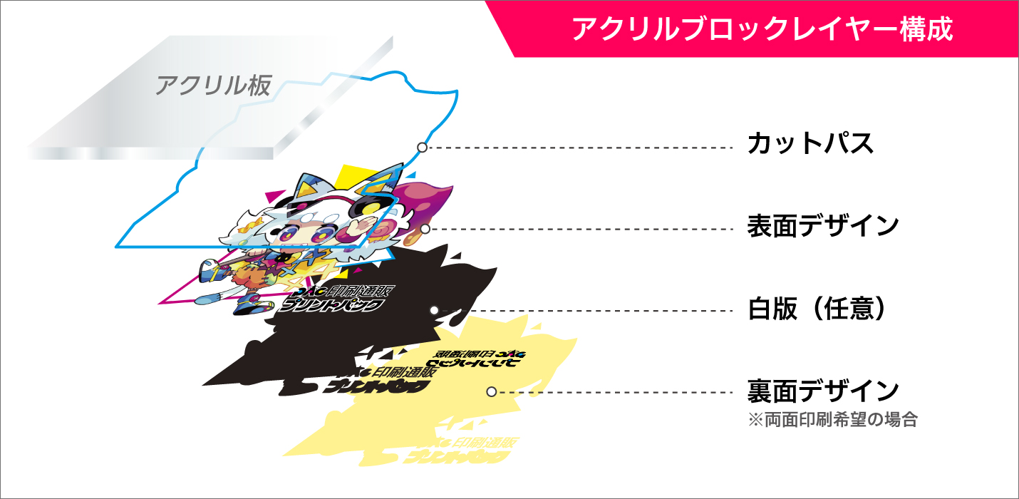 下図はアクリル印刷のレイヤー構成(印刷階層を表現しております)