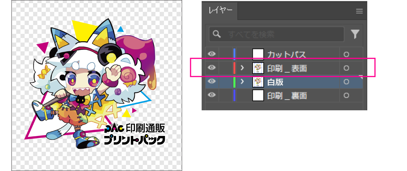 「印刷_表面」レイヤーにデザインを配置します。
