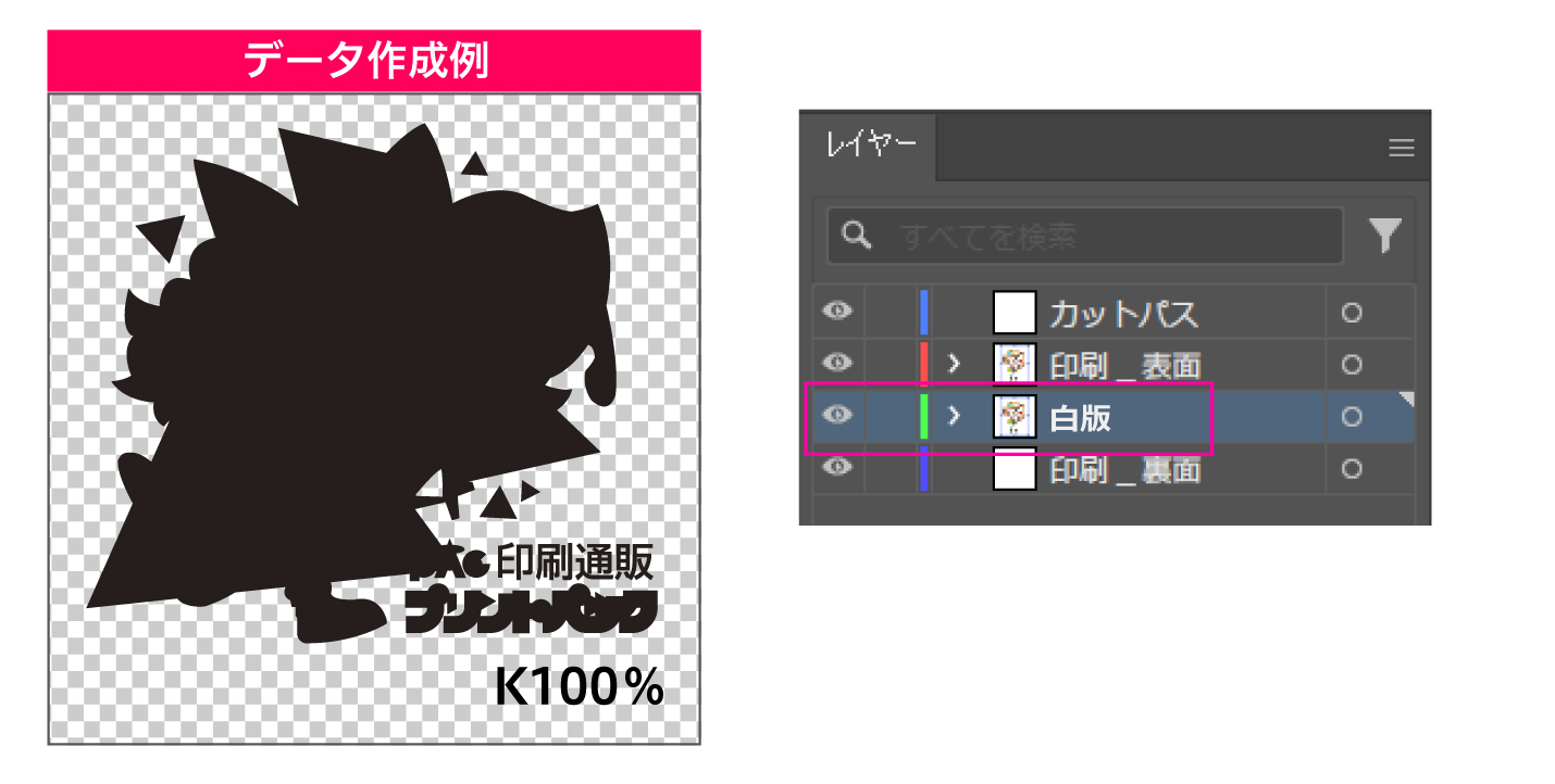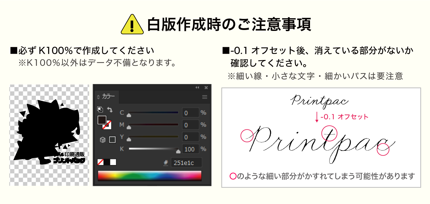 例)白版ありでご入稿の場合、ご注文ページにて必ず白版ありを選択してください。
