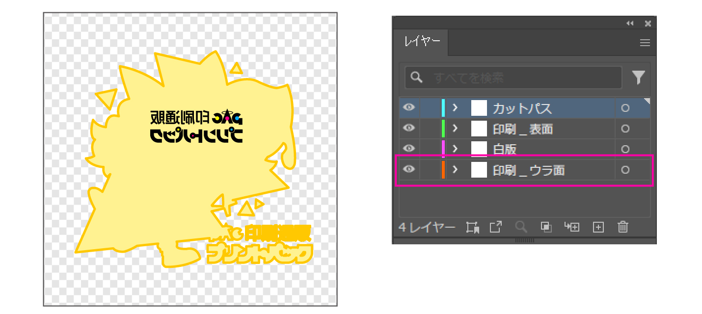 ただし、文字やロゴなどは反転が必要です(※かなり多くの方がお間違いの箇所となっております)