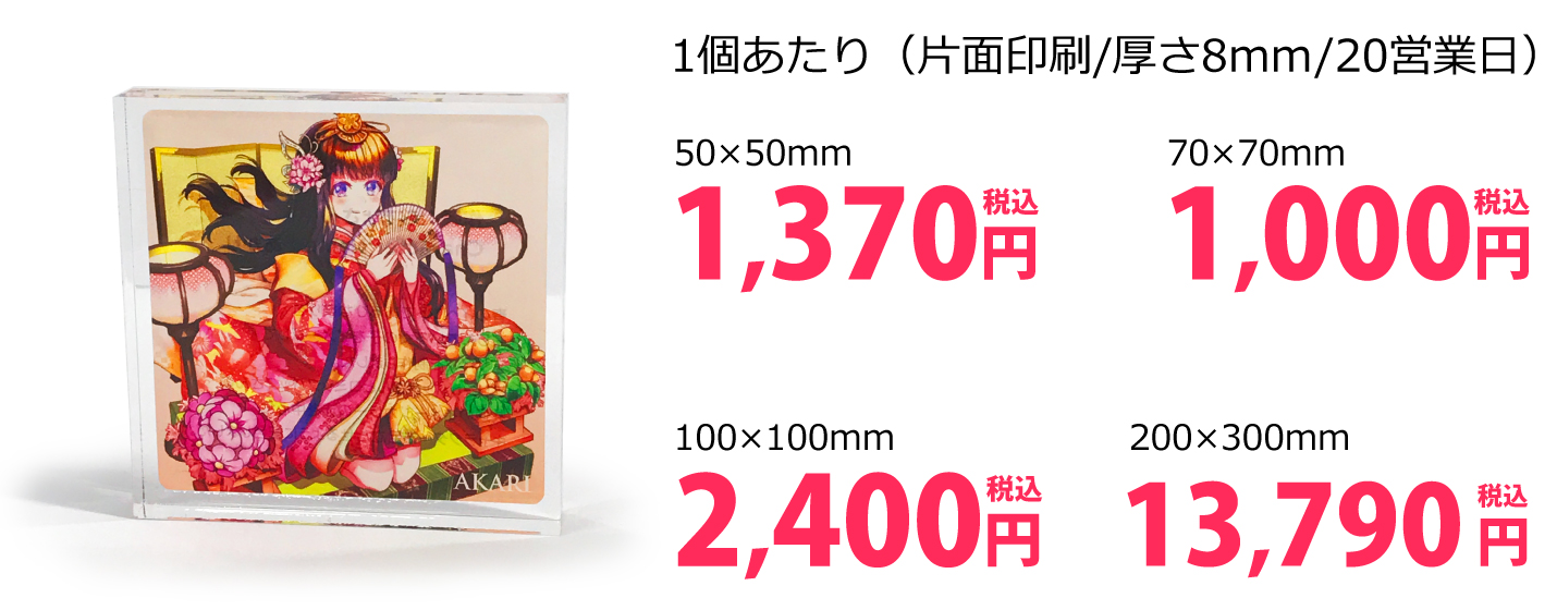 8mm・10mmのアクリル板でフリーカットも可能なプリントパックのアクリルブロック。