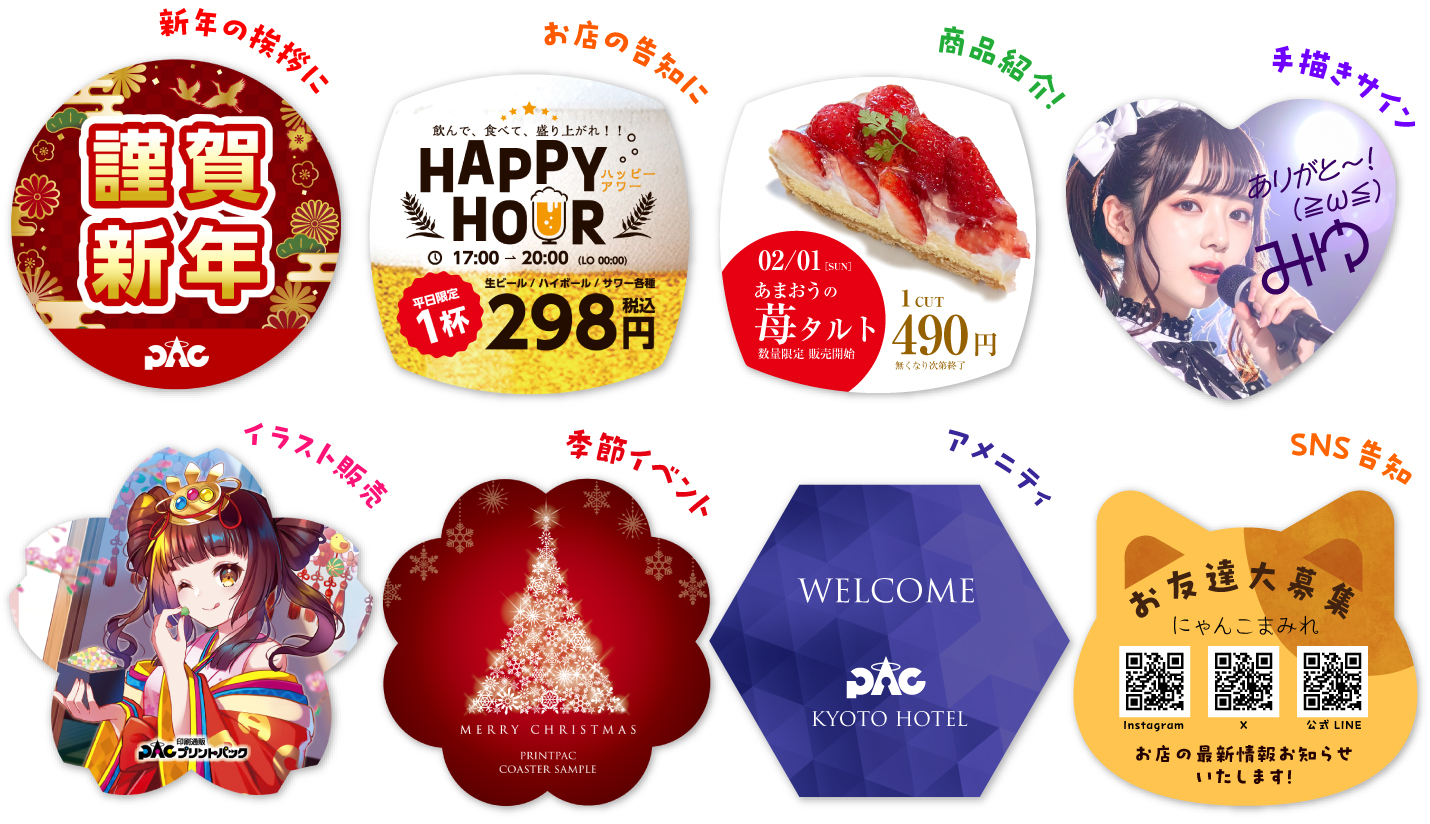 お店のイベント告知・季節限定コースター・イラスト配布・販売など