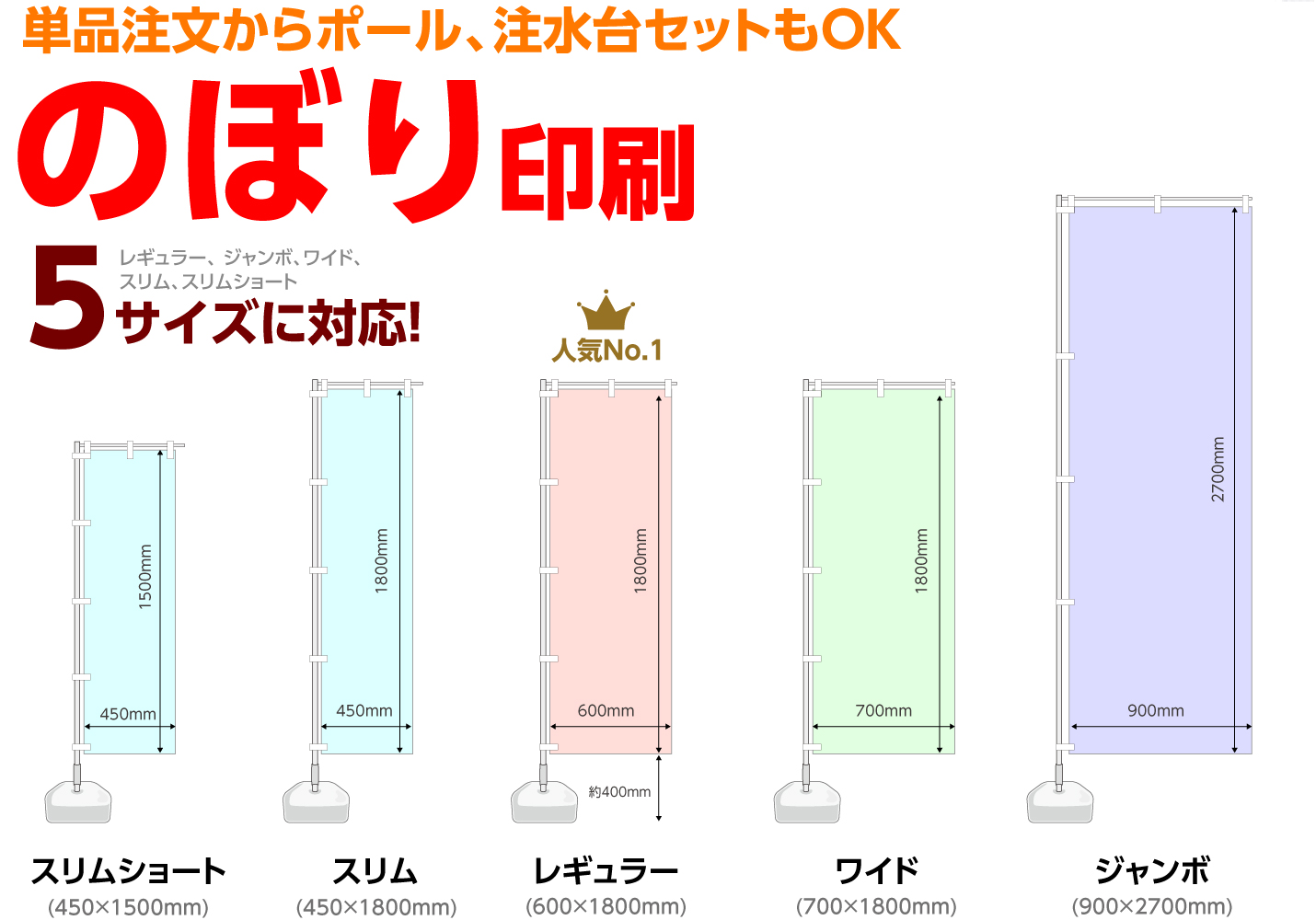 店頭PRや集客支援活動にご利用いただける「のぼり」印刷!