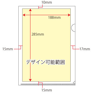 クリアファイル印刷を行う場合には、必ず天地左右、右記の余白が必要となり、印刷可能範囲は285mm×188mmとなります。 データ作成時には、弊社テンプレートをご用意しておりますので、ぜひご利用くださいませ。