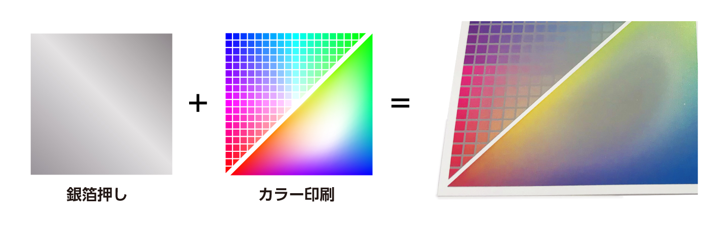 箔押し印刷の上に通常のカラー印刷を乗せることが