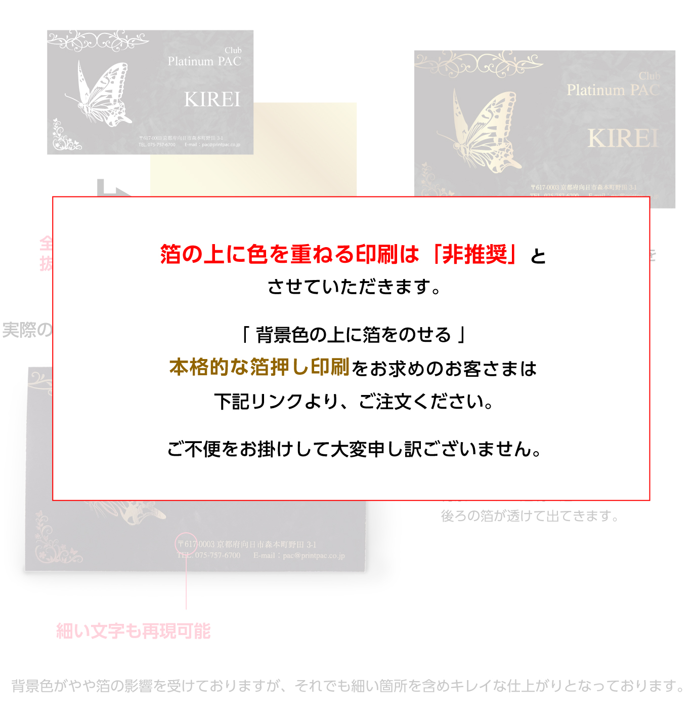 箔押し印刷 デザイン上のNG事例