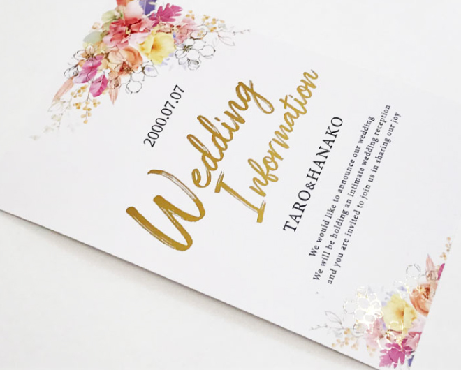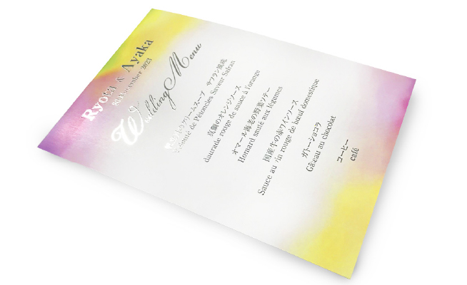 ウエディングカードやメニューに箔押しすることで煌びやかに!