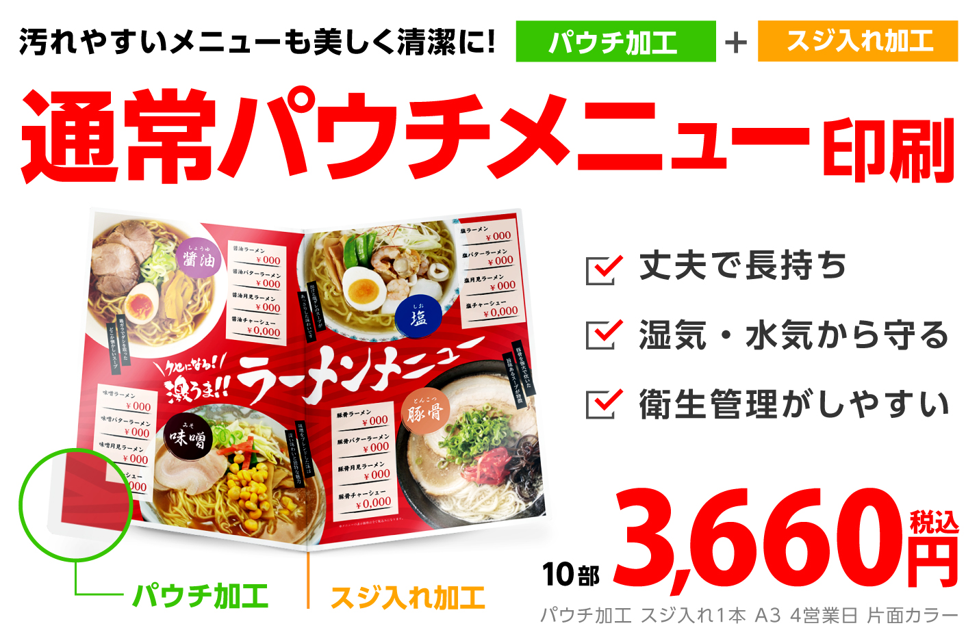 ※通常メニュー印刷(パウチ加工)に対応しております。 |