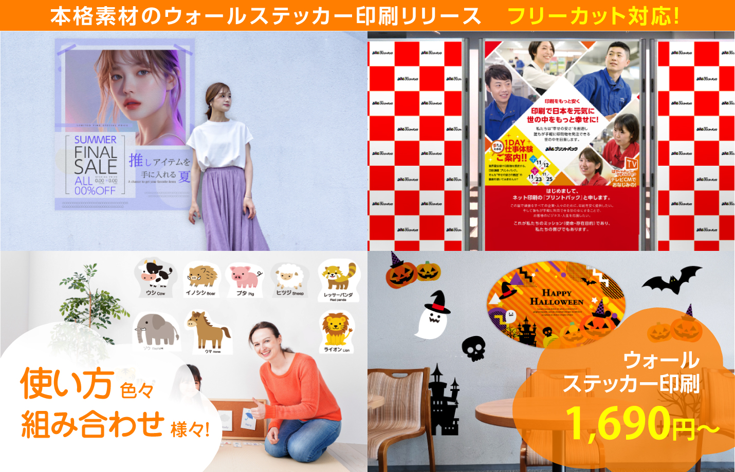 ウォールステッカー印刷 ご注文仕上げフリーカットパス 1本無料対応