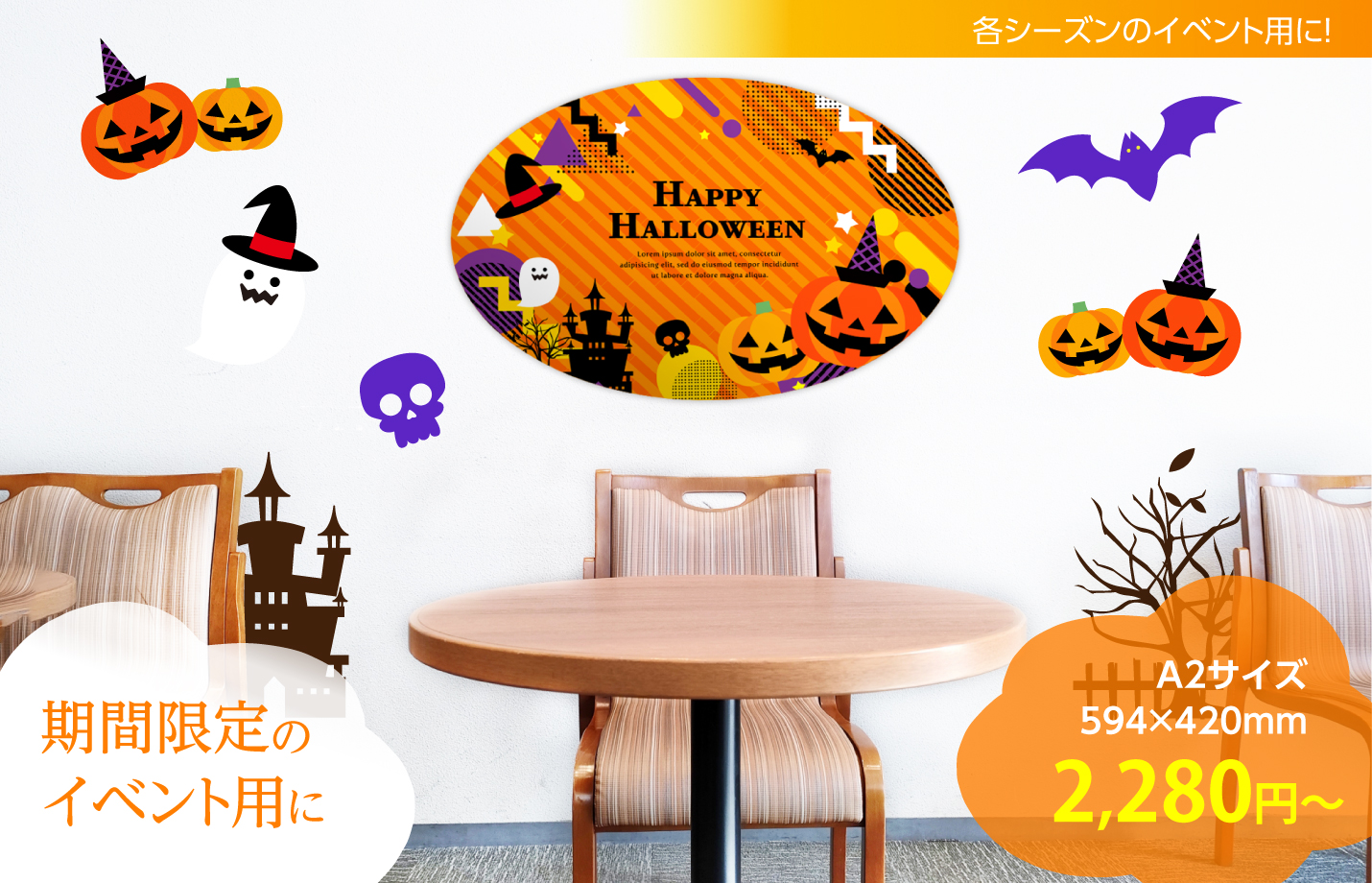 室内の装飾や店舗の模様替え、案内表示などにご活用いただけます。