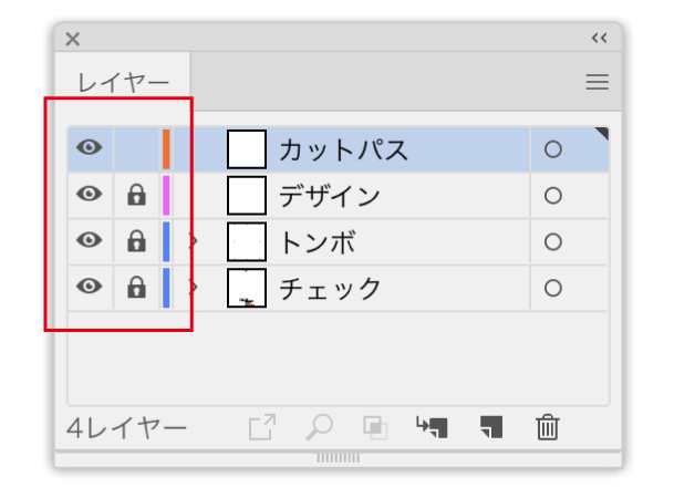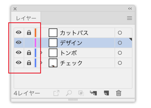 他のレイヤーをロックすることで、誤って他のレイヤーにデザインしてしまうことを防げます。
