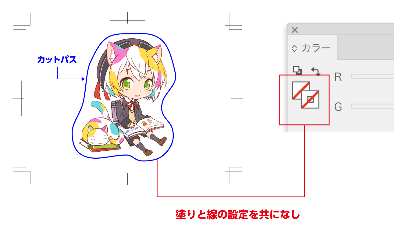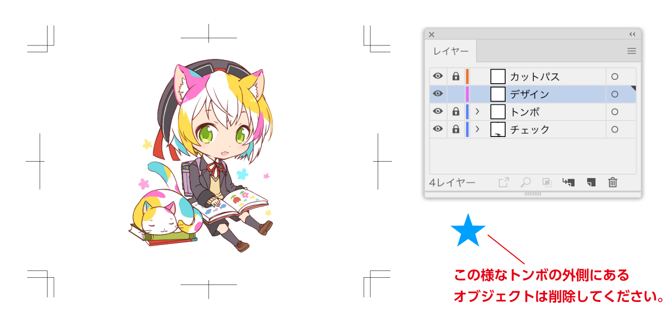 ※「カットパス」レイヤー内のオブジェクトは印刷されませんので、