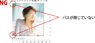 ハーフカットパス・仕上げカットパスの誤差について ハーフカットパス・仕上げカットパスは±1mm程の誤差が生じることがございます。カットパスギリギリのデザインの場合、誤差により周囲に白いフチが出る可能性がございます。必ずヌリタシをお付けくださいませ。 ※文字などの必要な情報は、カットパスから2mm以上内側に配置してください。 ![]() |