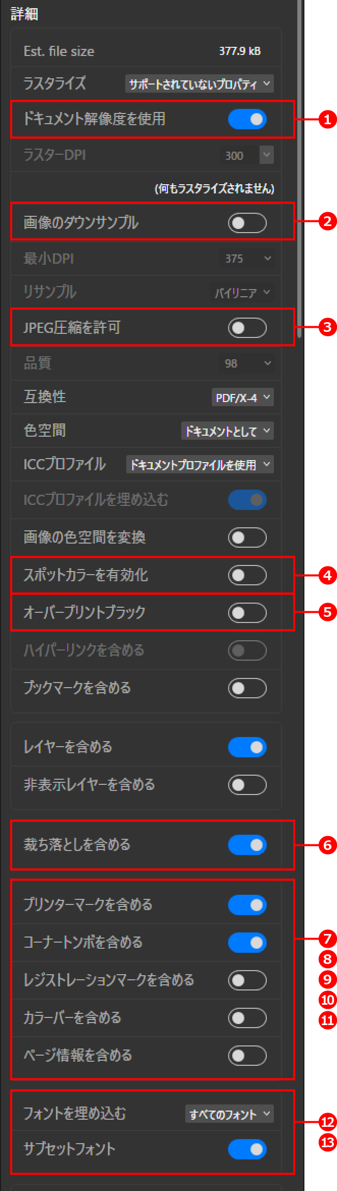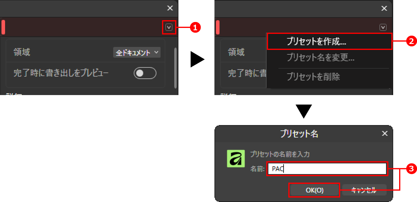 PDFエクスポート設定のプリセットを作成しておくとで次回以降の設定を省略することができ