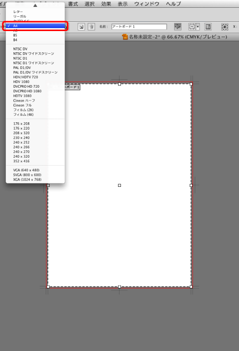 アートボードの「サイズ」を変更