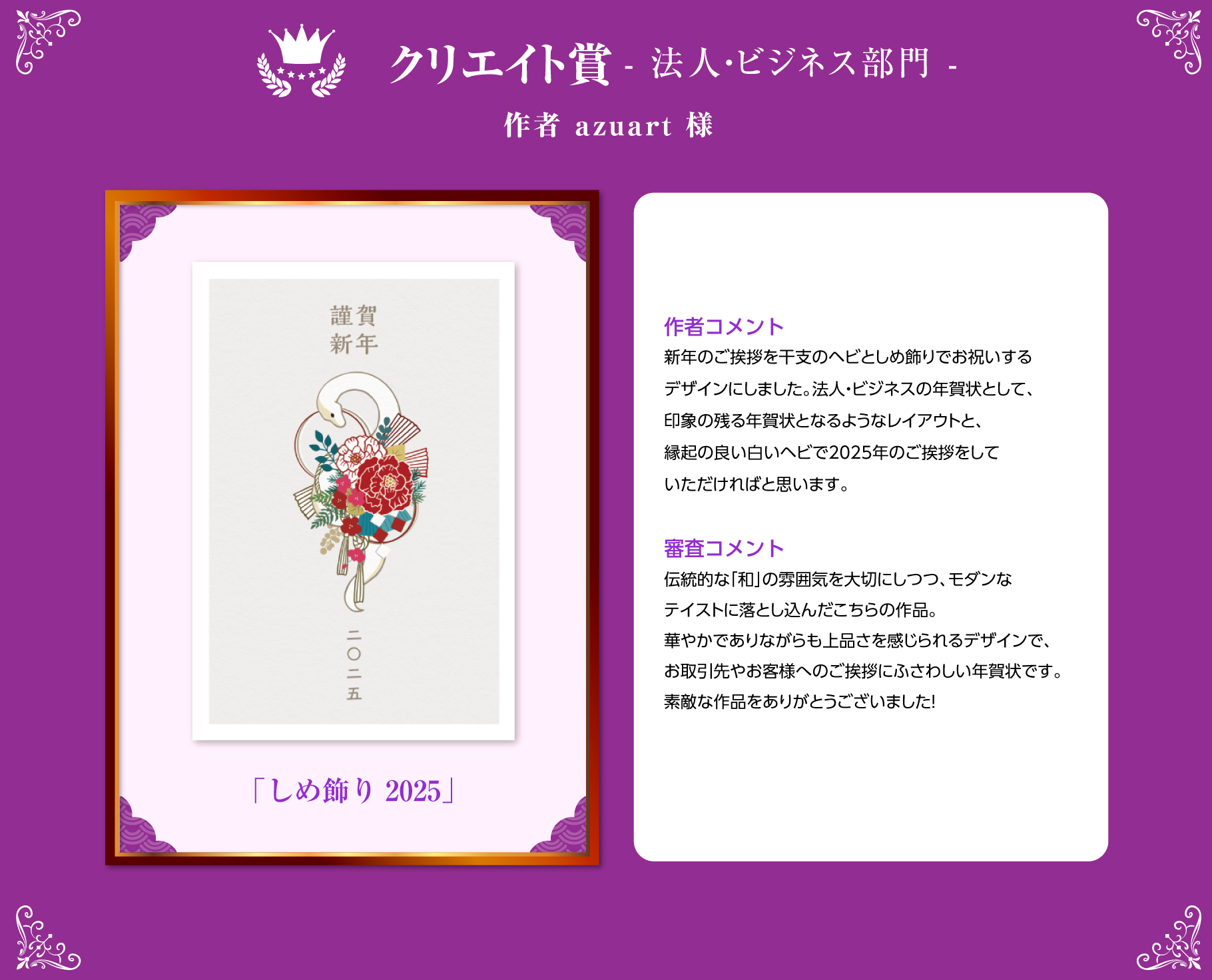 法人・ビジネス部門より azuart様 作「しめ飾り 2025」