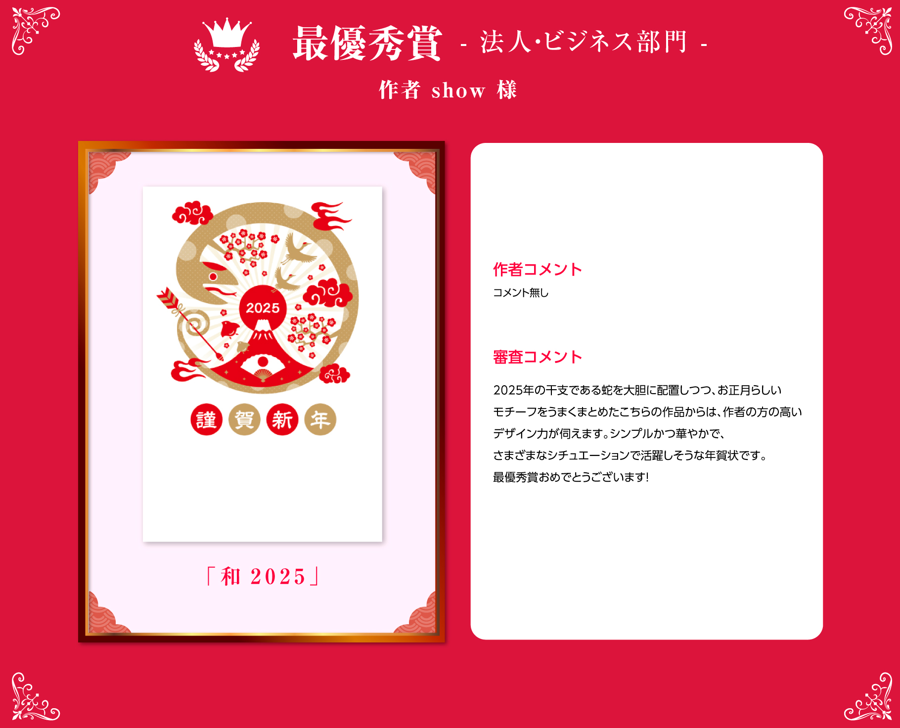 法人・ビジネス部門より show様 作「和2025」