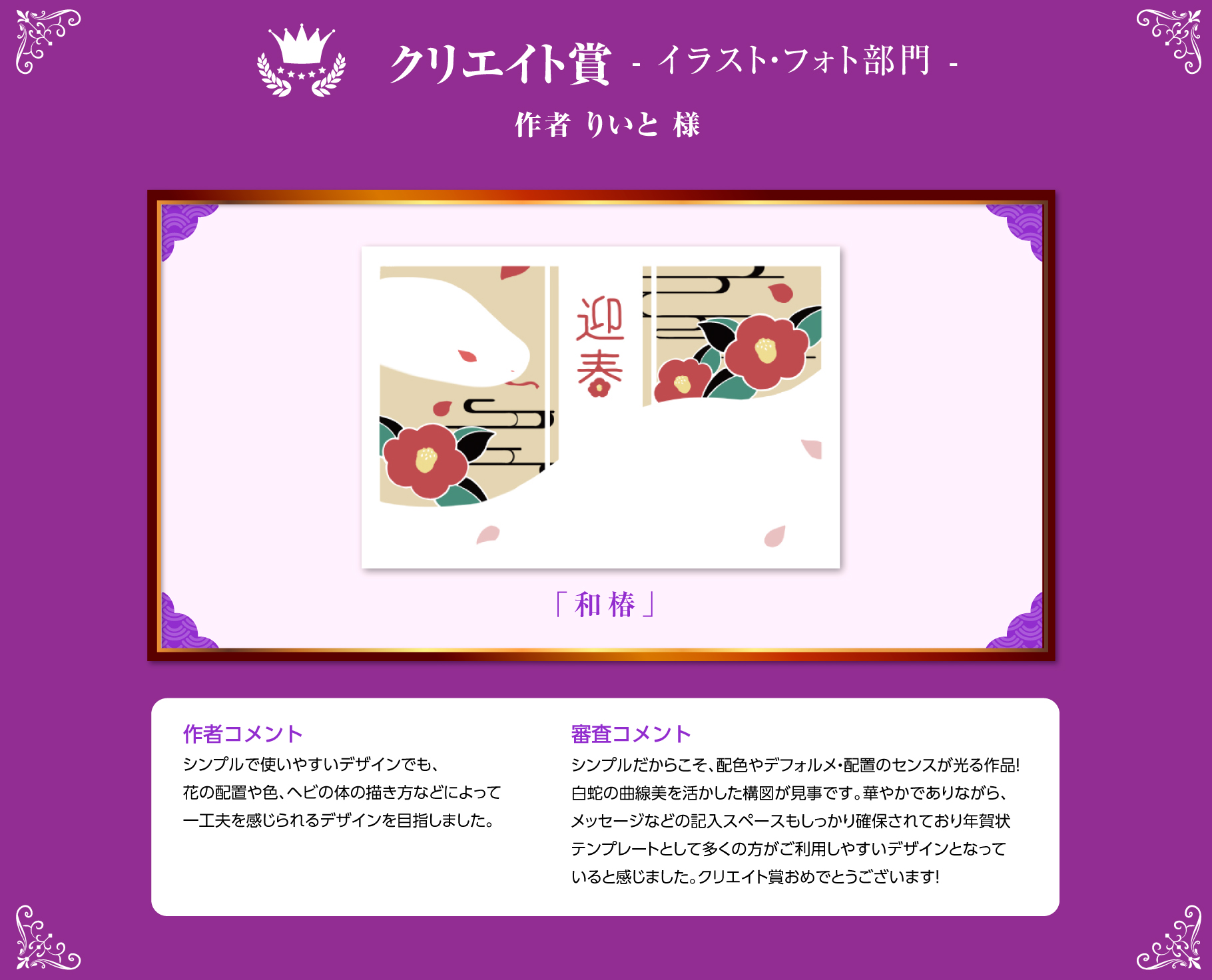 受賞者様のコメントも掲載しておりますので、作品と合わせてぜひご覧くださいませ。